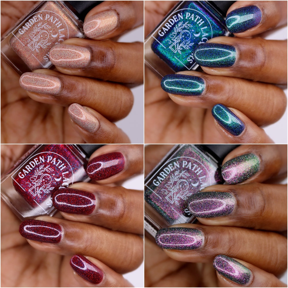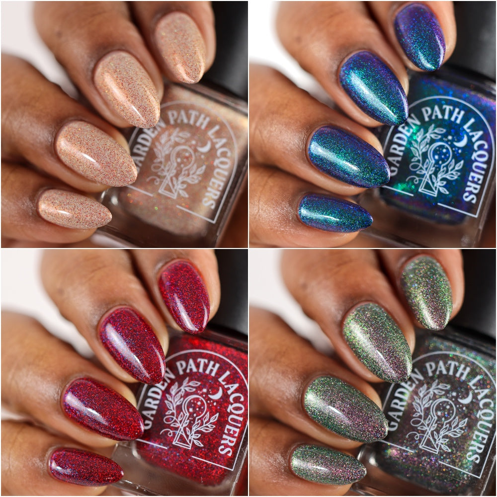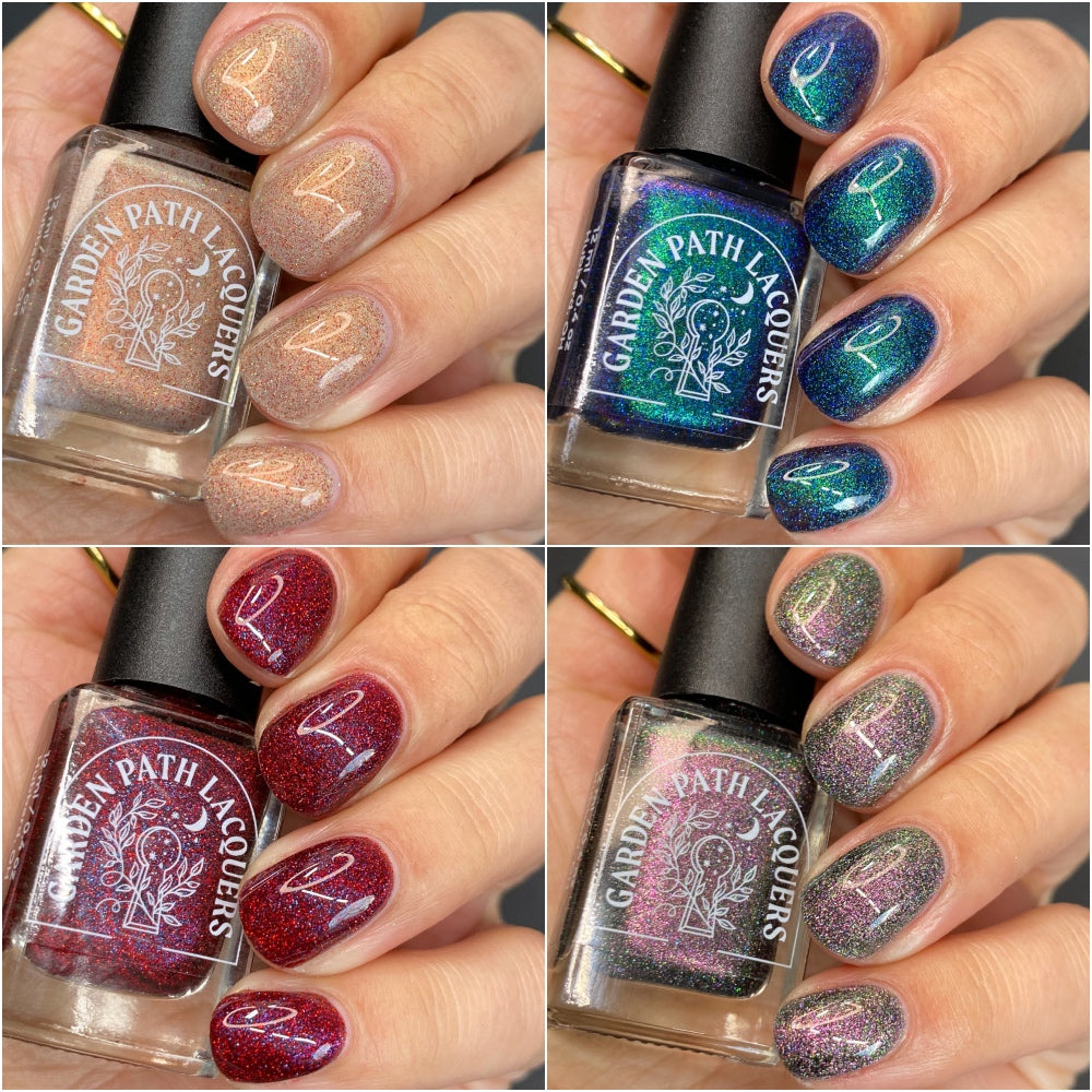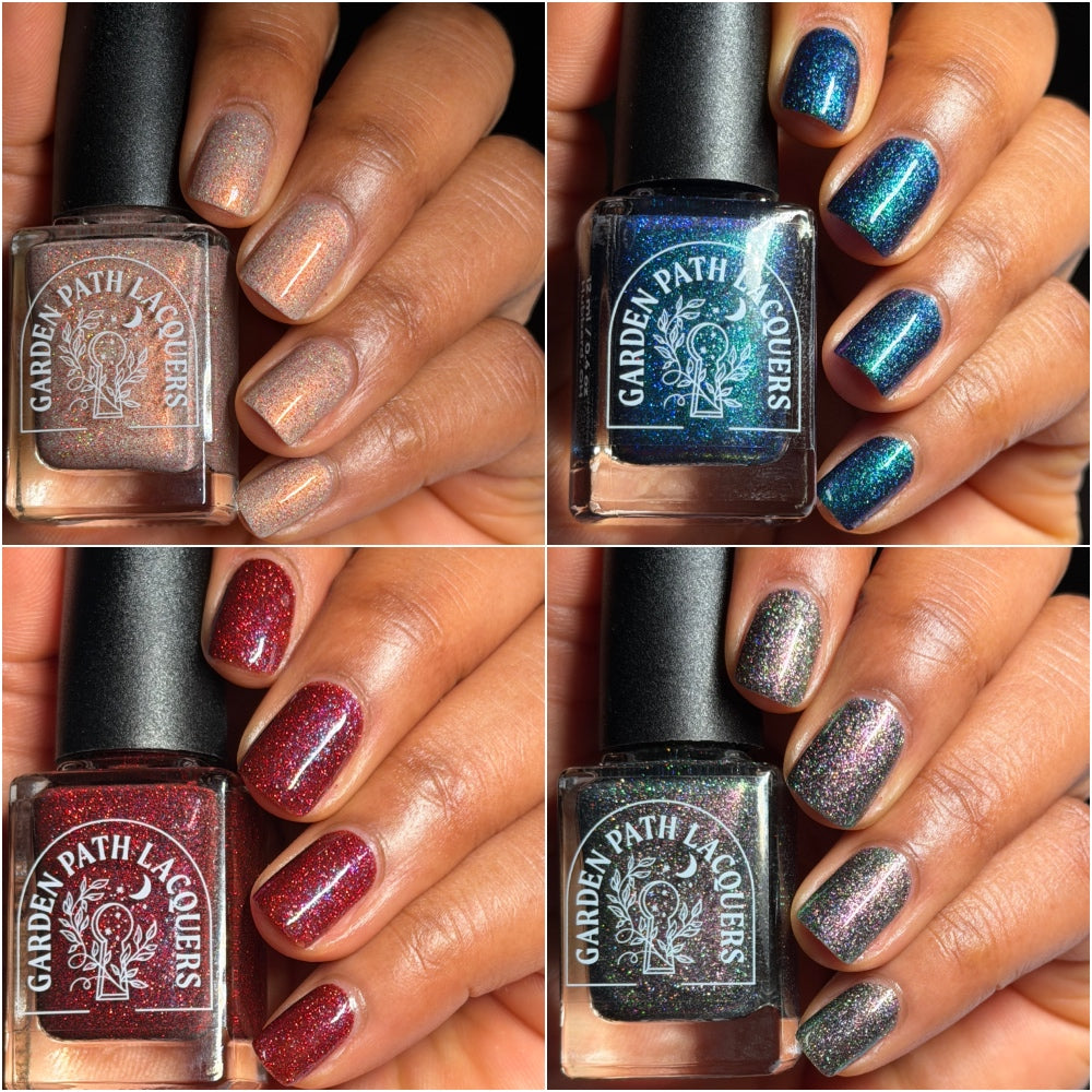 Join Garden Path Lacquers as we pay homage to the dark and unsettling nights of this seemingly unending winter season. Inspired by media that seeps a chill into your bones, these four gothic shades are the perfect accent to your weird girl winter.