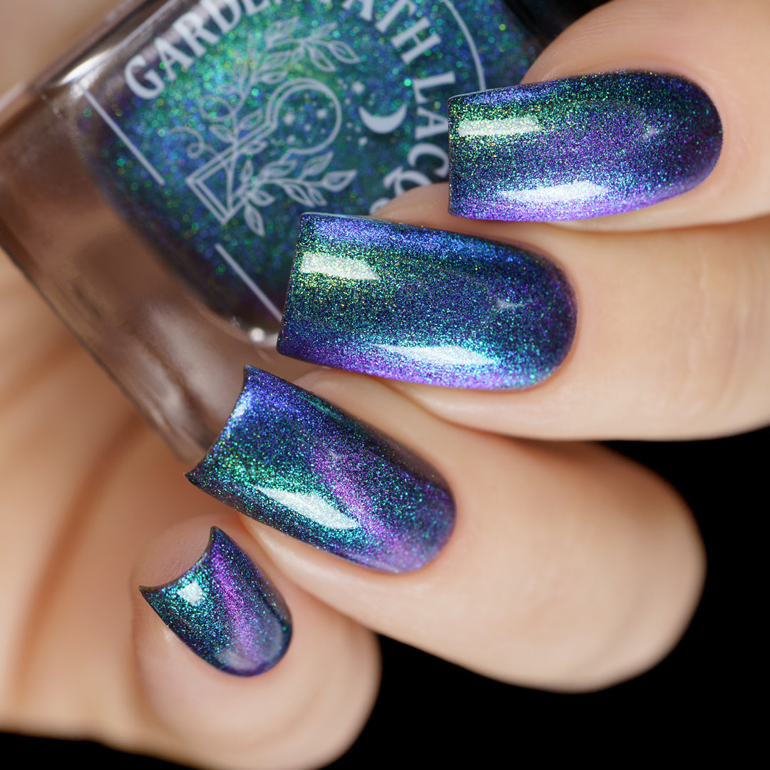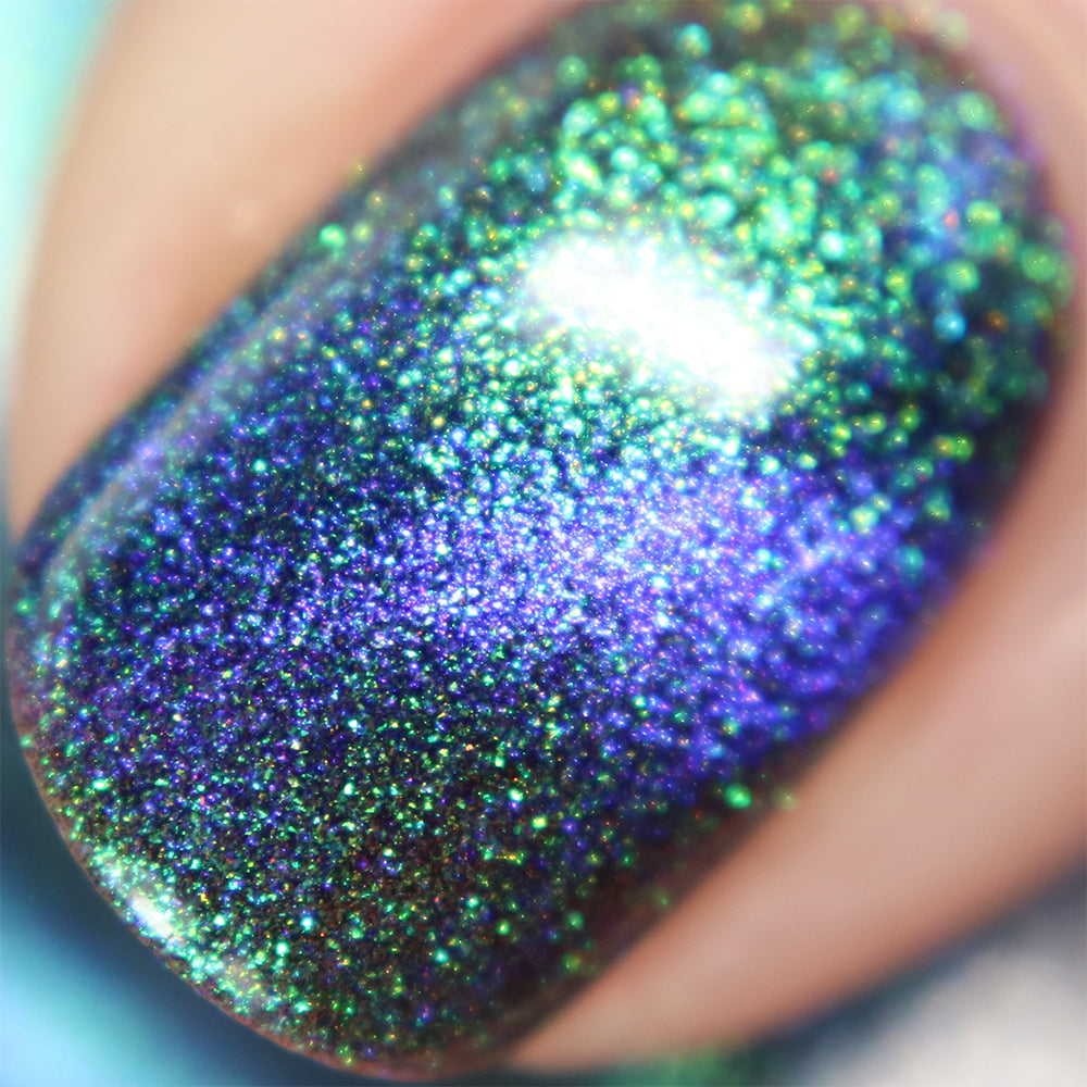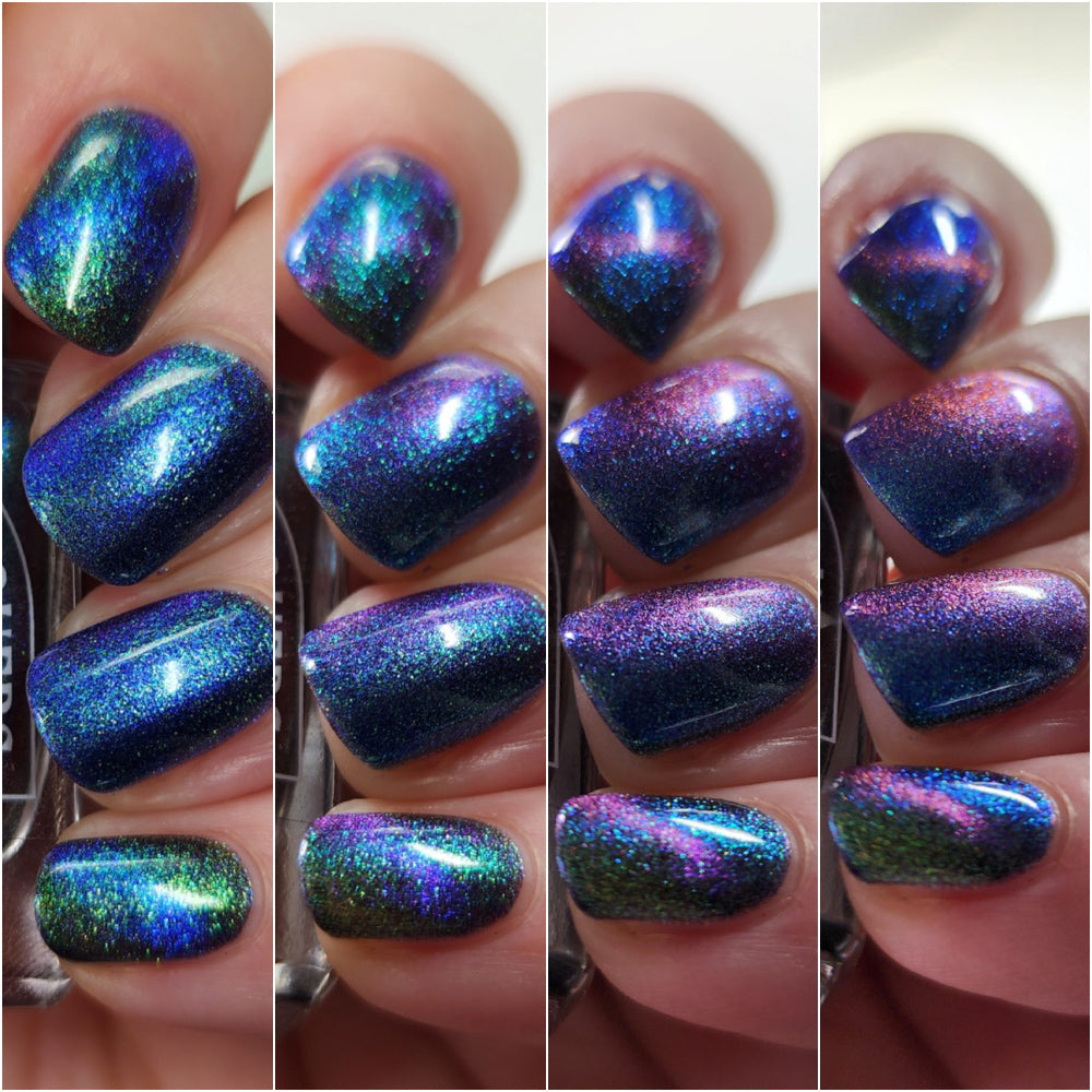 Blue/purple/pink shifting magnetic pigment is accented with green/blue Aurora shimmer.